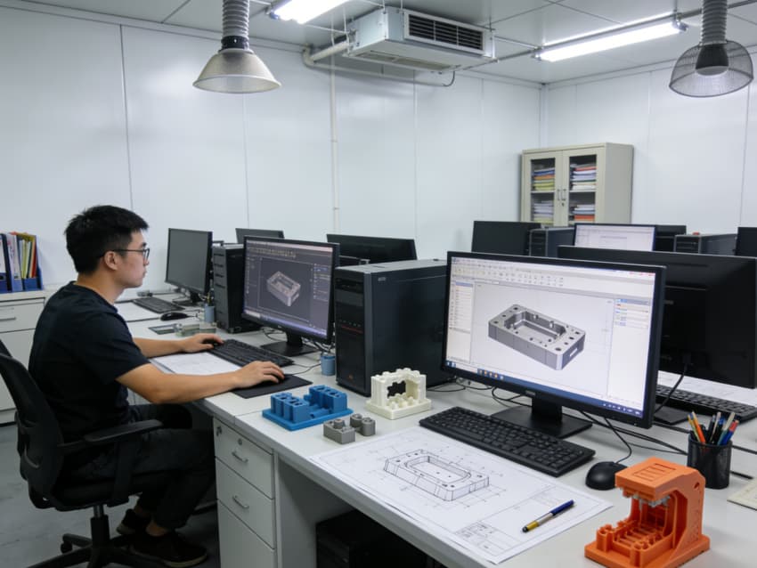 白色墻面采用工業級潔凈涂層,無縫拼接搭配圓弧陰陽角設計,杜絕積塵死角,減少粉塵對模具精度的影響。車間劃分加工區、檢測區、調試區等功能區域,布局科學合理,加工區增設阻尼減震墊層降低設備振動干擾,檢測區預留精密儀器安裝位與恒溫調控接口,各區域均配備標準化管線預埋與設備固定點位,全方位保障模具制造的精準性與穩定性。