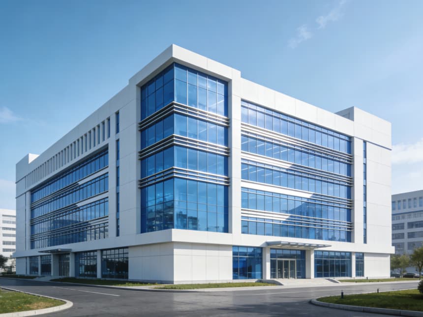 本次研發(fā)空間適配各類技術(shù)研發(fā)、實驗測試等場景需求。研發(fā)樓外立面采用玻璃幕墻搭配淺灰色金屬線條,通透大氣的同時保障室內(nèi)采光,入口設(shè)專屬門廳,彰顯研發(fā)場所的嚴謹性與科技感。