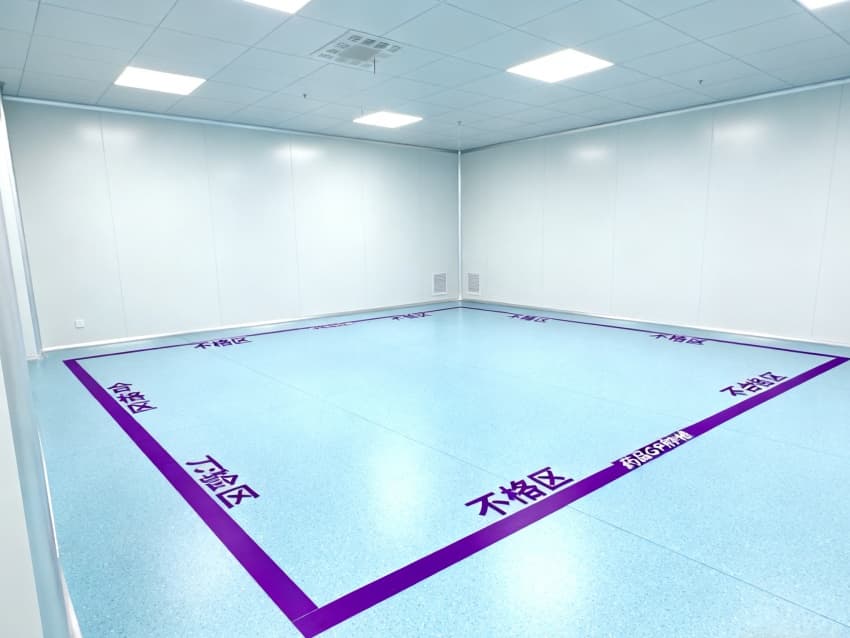 車間整體風(fēng)格潔凈統(tǒng)一,地面采用淺藍(lán)色耐腐抗菌環(huán)氧材質(zhì),無縫拼接工藝杜絕衛(wèi)生死角,耐消毒藥劑侵蝕且易清潔;四周白色抗菌墻壁經(jīng)納米涂層處理,粉塵附著率極低,配合頂部高效空氣過濾系統(tǒng),穩(wěn)定維持萬級潔凈度,契合醫(yī)藥用品生產(chǎn)對無菌環(huán)境的嚴(yán)苛要求。