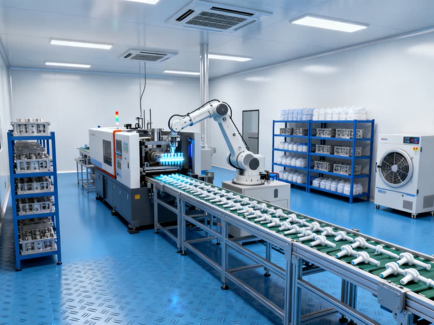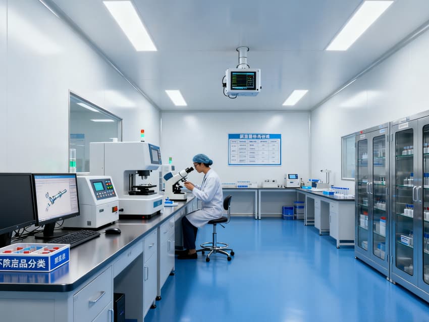 本無菌醫(yī)療器械生產(chǎn)廠房整體遵循GMP無菌生產(chǎn)標準,以藍色防靜電潔凈地坪搭配白色抗菌墻面,構建高效凈化體系,適配注射器、植入器械等無菌產(chǎn)品生產(chǎn)。凈化功能貫穿全空間,核心圍繞塵??刂啤⑽⑸镆种萍敖徊嫖廴痉婪叮瑸楫a(chǎn)品質(zhì)量筑牢第一道防線。