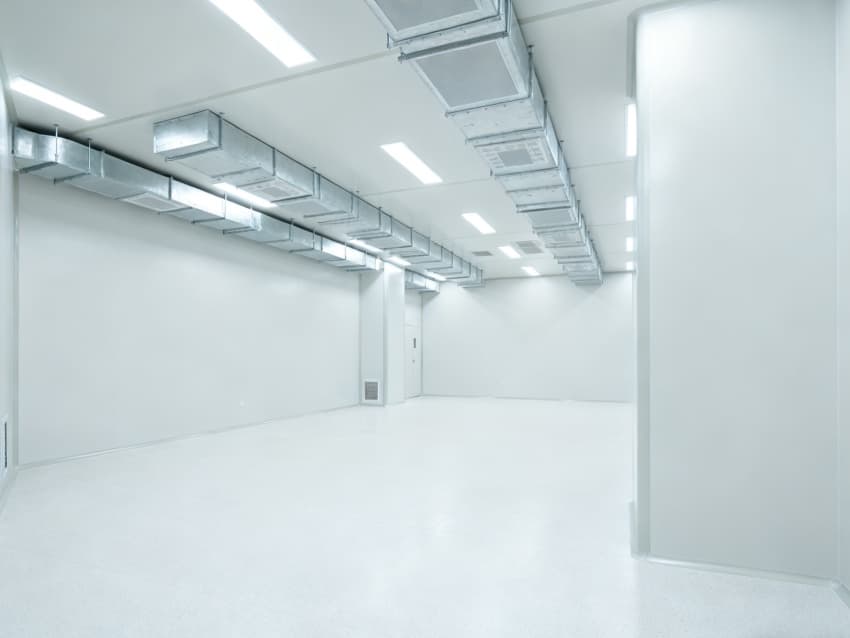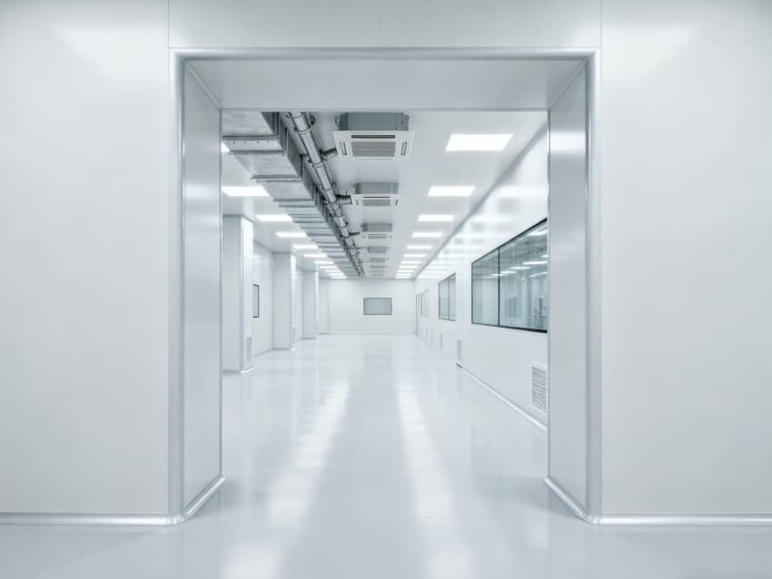 內(nèi)部6個核心生產(chǎn)車間均為無設(shè)備空曠布局,按萬級潔凈標(biāo)準(zhǔn)打造:地面鋪設(shè)無縫環(huán)氧自流平,墻面采用食品級不銹鋼墻板,陰陽角做圓弧處理,杜絕積塵死角;空間柱網(wǎng)間距均勻,預(yù)留充足設(shè)備安裝點位與運維通道,滿足后續(xù)柔性生產(chǎn)需求;頂部吊頂整合新風(fēng)系統(tǒng)與防眩光照明模塊,風(fēng)口布局對稱規(guī)整,進一步強化空間的空曠感與規(guī)整性,為生物制藥生產(chǎn)的潔凈性、安全性與可擴展性奠定堅實基礎(chǔ)。