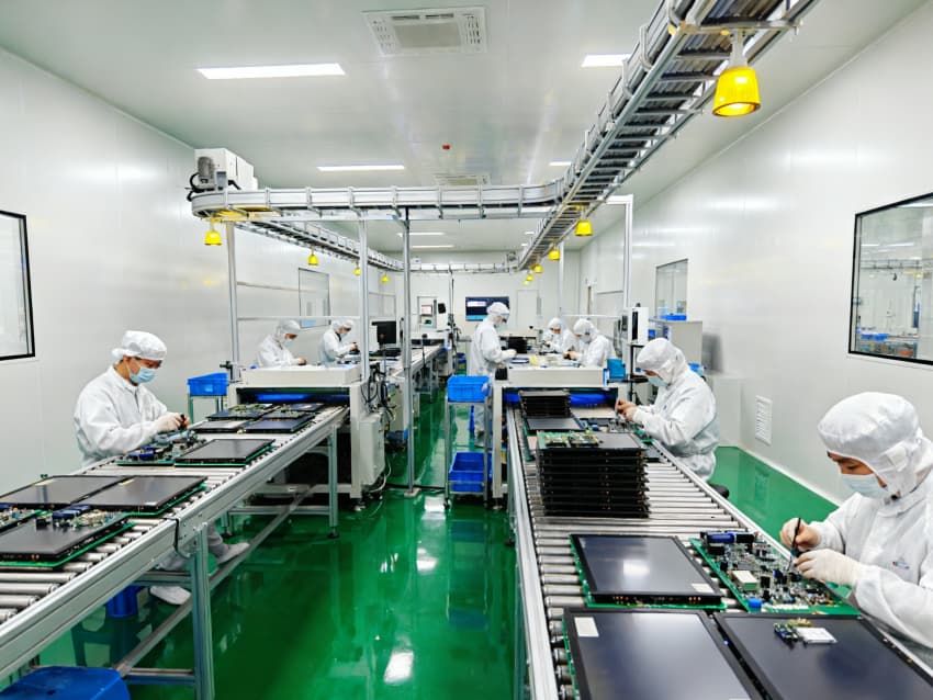 車間整體無多余裝飾,地面隱形標(biāo)識清晰劃分人流、物流通道,避免交叉污染,同時配備預(yù)留式高效送排風(fēng)系統(tǒng)安裝位,可精準(zhǔn)控制室內(nèi)溫濕度與潔凈度等級。簡潔專業(yè)的空間設(shè)計與適配性極強的基礎(chǔ)配置,既滿足顯示器件對潔凈度、防靜電的嚴(yán)苛要求,又為后續(xù)生產(chǎn)線搭建與產(chǎn)能升級提供靈活支撐,助力高效合規(guī)生產(chǎn)。